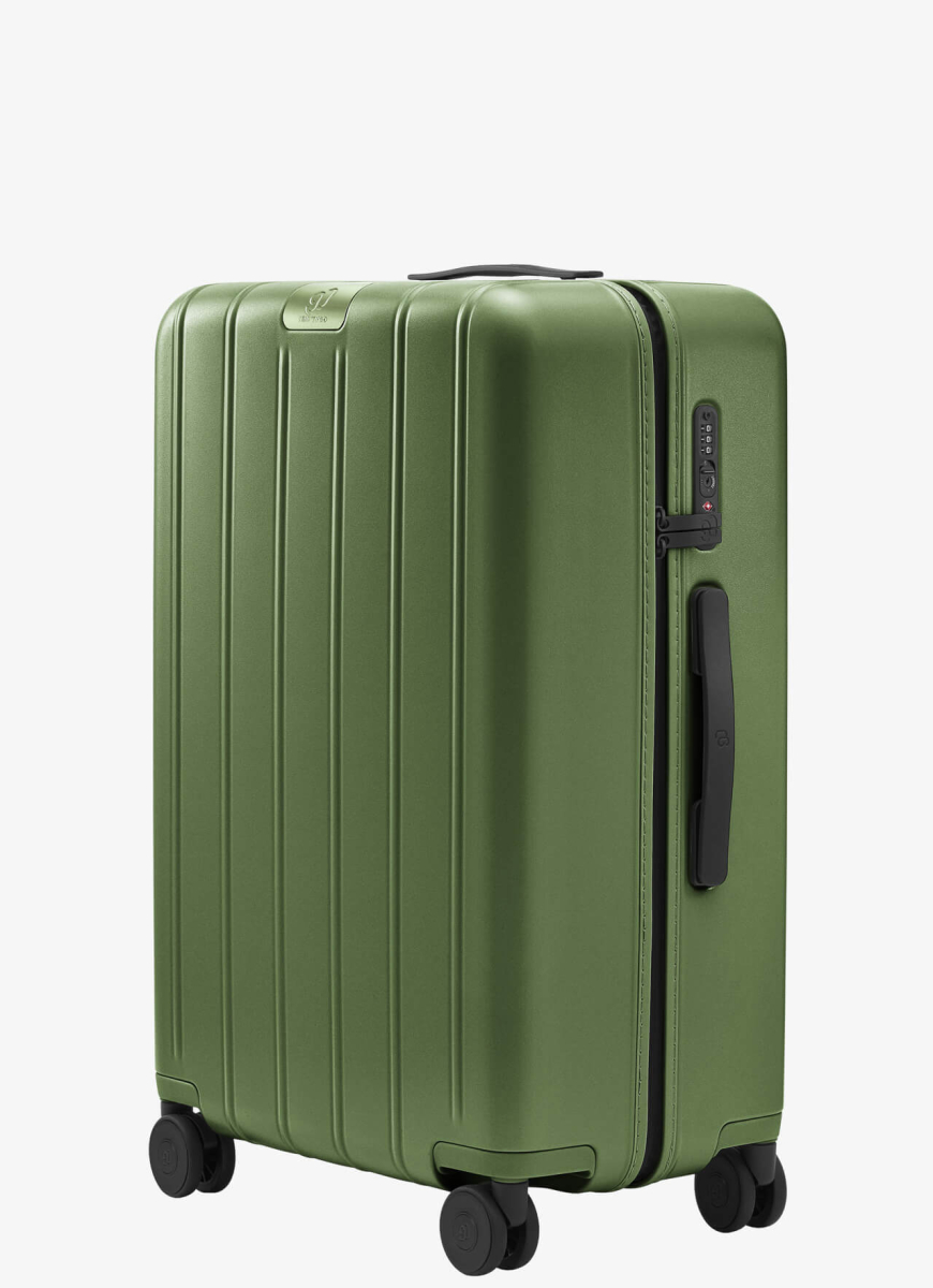 The large suitcase of the Touch series is made of the strongest scratch-resistant polycarbonate Macrolon material, has an aluminum trolley, a TSA-certified code lock. Enlarged double wheels for quiet movement with a full 360-degree rotation. Inside the suitcase has two compartments, two pockets, one of which is waterproof. The design of the suitcase is made in a minimalist style. The suitcase is presented in 4 colors: black, brown, white and green. The volume of the suitcase is 101 liters, dimensions 77x52x31 cm.
